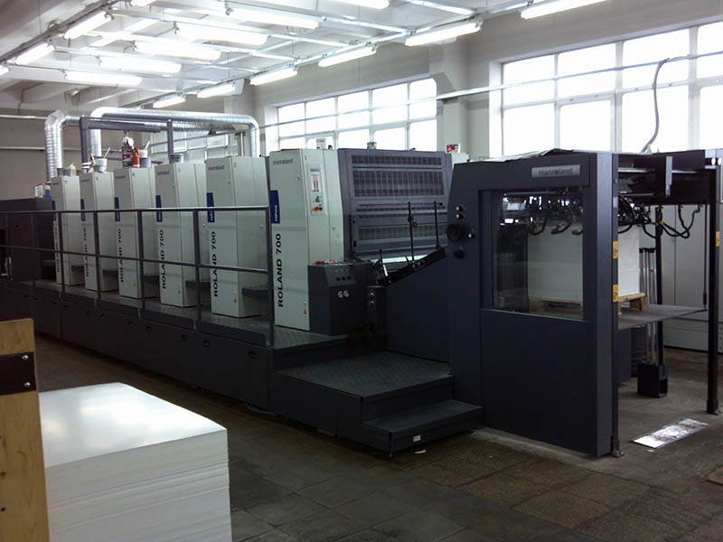 - Пятикрасочная листовая офсетная машина с секцией УФ-лакирования Manroland R705L 3B LV Hi Print, Германия, с печатью УФ-красками.